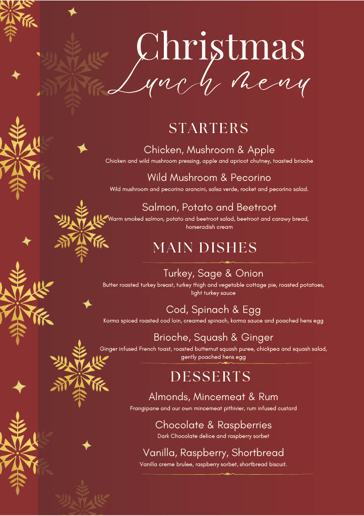 Christmas Lunch Menu is served every Thursday, Friday and Saturday in December